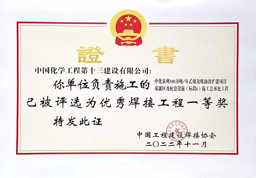 中化泉州100万吨/年乙烯及炼油改扩建项目球罐区及配套设备(标段6)施工总承包工程